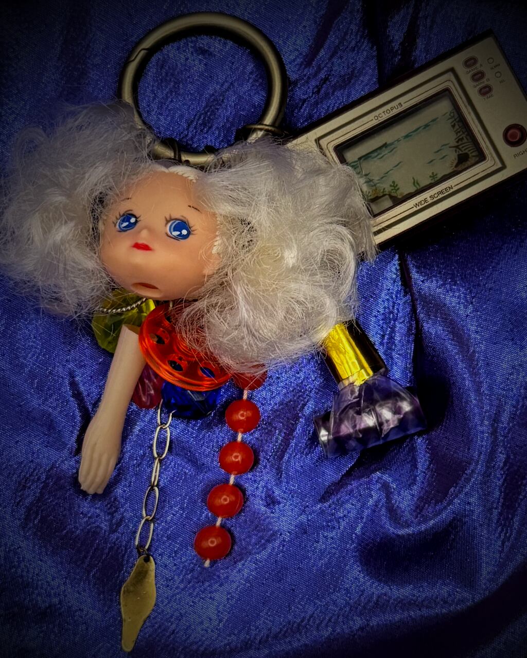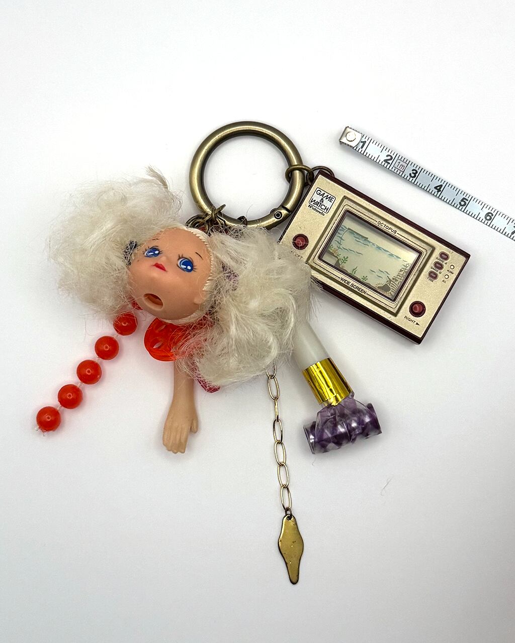 爆発ツインのドールヘッドと吹き戻し、懐かしのオクトパスアーミー(ミニゲームウォッチ)、ヴィンテージビーズなどが集結したチャーム。