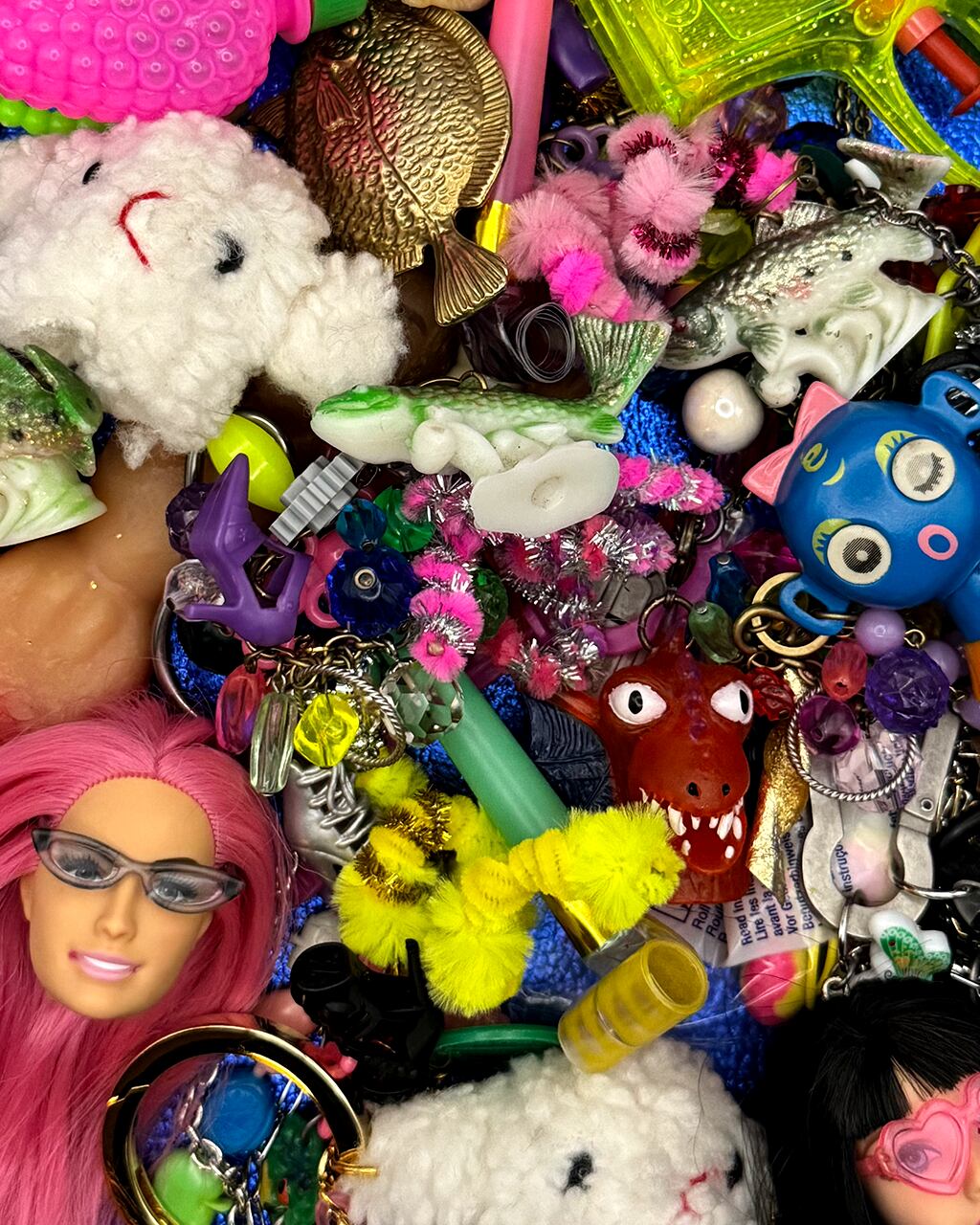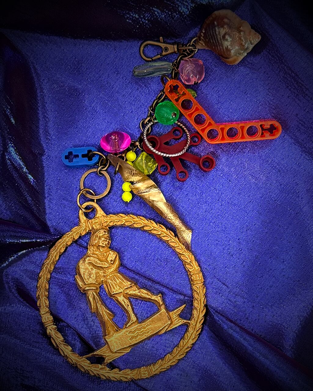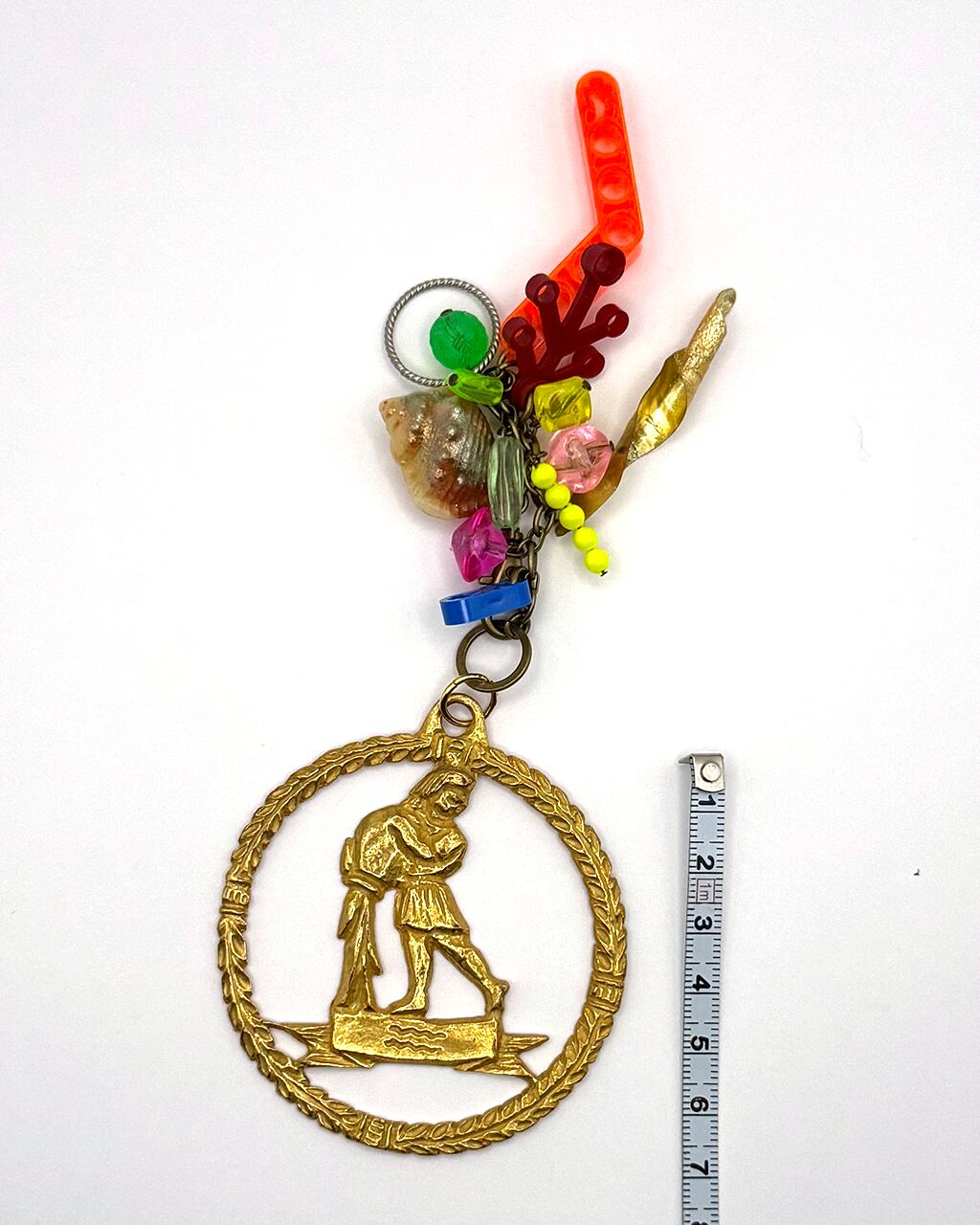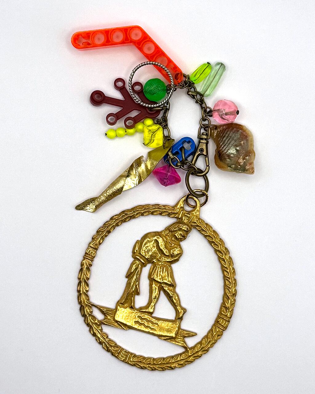 デカデカヘッドにヴィンテージパーツやブロックがついたチャーム。バランスが絶妙なので、バッグにつけてお楽しみください。