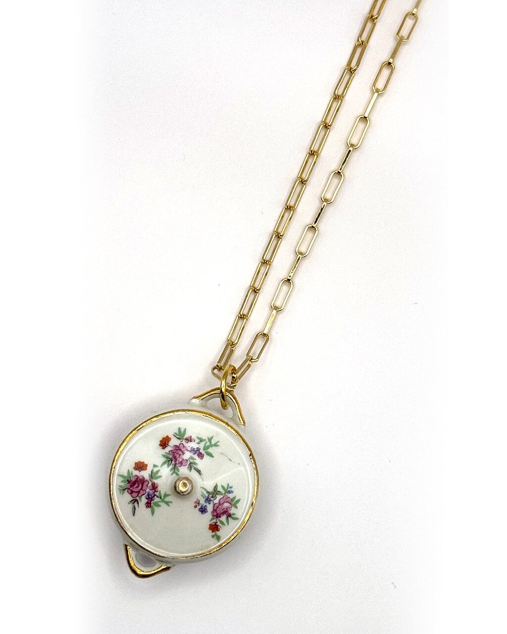 ヴィンテージフレンチキーホルダーをヘッドにした短めのネックレス。ピラニアヴィンテージにしては、めずらしくちょこっと品アリです。丸いフォルムと柄がお上品。